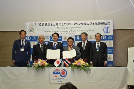 覚書では山形市がタイの柔道選手が出場権を獲得するように支援し、出場が決まった場合は山形市で事前合宿を行うといった内容のほか、タイでの柔道普及・強化、両者のスポーツ分野での交流事業の実施と参加、タイでの観光PRなどが盛り込まれています。