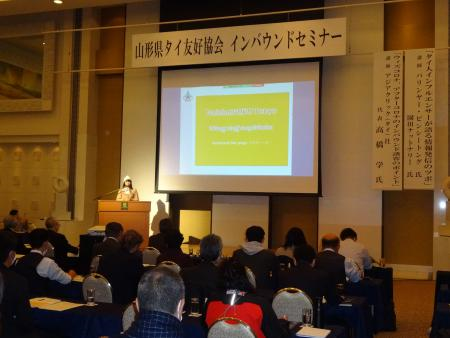 平成30年11月5日(月)に山形県タイ友好協会設立総会に先立ち、タイ王国のバンサーン・ブンナーク大使をお招きしたタイ経済セミナーを開催いたしました。タイ国政府観光庁のパッタラアノン東京事務所長からタイ国政府のインバウンドツーリズム振興の政策についてご紹介いただいたほか、マーケティングオフィサーの佐藤緑さまからはタイ観光の魅力についてお話いただき、タイ政府の観光振興に向けた取り組みについて理解を深める機会となりました。