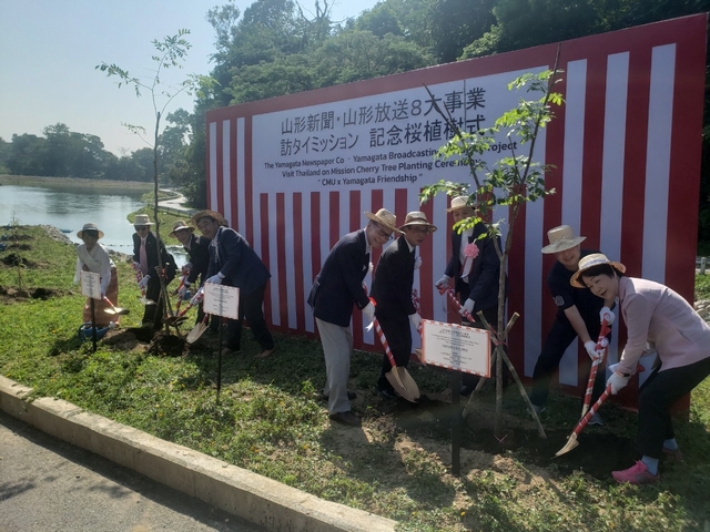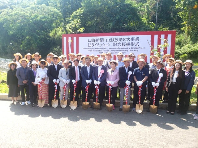 5日には、バンコクから北へ700kmのチェンマイへ場所を移動し、山形大学と繋がりのあるチェンマイ大学のハイランドセンターにて20本の桜の植樹も行ってまいりました。