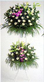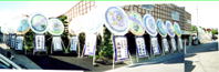 花環径は1800mm 2000mm 2100mm 2400mmと イラスト入りの花環まで、ご予算にあわせて 雨にぬれても、大丈夫な名札ケース 特殊文字、カラー イラスト、画像も入れられ ます